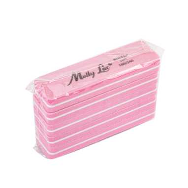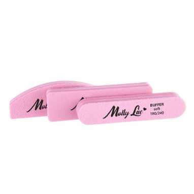 Polerka dwustronna Buffer mini szeroka Medium 100/180 różowa MollyLac 5szt Buffer do matowienia i wyrównywania paznokci naturalnych lub...