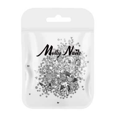 Dodaj swoim stylizacjom niepowtarzalnego blasku! Cyrkonie Molly Nails w srebrnym odcieniu to idealny sposób na podkreślenie każdej stylizacji paznokci – od delikatnych po wieczorowe. W zestawie znajduje się mix różnych kształtów i rozmiarów, co daje pełną swobodę tworzenia wyjątkowych kompozycji.