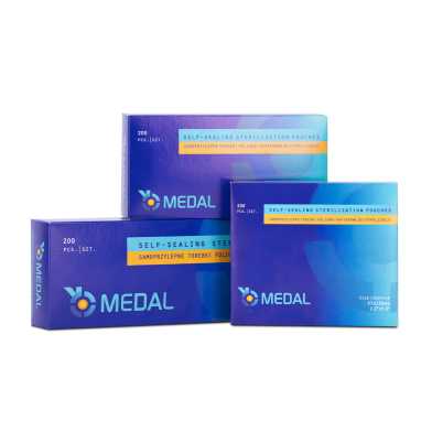 Torebki wykonane ze specjalnego papieru medycznego 60g/m²; folii barierowej niebieskiej, 7-warstwowej. Posiadają indykatory chemiczne do sterylizacji parowej i tlenkiem etylenu.