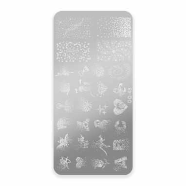 Blaszka przeznaczona do odbijania wzorów metodą stempelkową na paznokciach. Szybka i bardzo łatwa forma na precyzyjne zdobienia paznokci zarówno przy pomocy lakierów hybrydowych, jak i tradycyjnych dedykowanych tej metodzie. Wybierz swój wzór z ogromnej oferty płytek i zaskakuj wyjątkowym manicure.