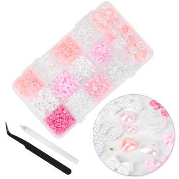 Kasetka z ozdobami kokardki kwiatki perełki BKHZ-001 Dodaj paznokciom efektu WOW dzięki zestawowi ozdób 3D zamkniętemu w praktycznej kasetce z...