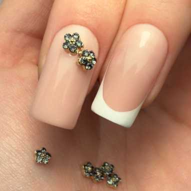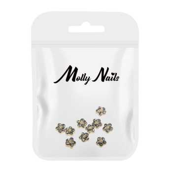 Wzbogać swoją stylizację o eleganckie ozdoby 3D w kształcie kwiatków od Molly Nails! Błyszczące cyrkonie osadzone w złotej podstawie nadają paznokciom luksusowego wyglądu i pięknie odbijają światło, tworząc efekt biżuteryjnego manicure.