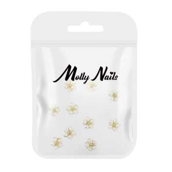 Stylowe i delikatne ozdoby 3D w kształcie kwiatków z perłami od Molly Nails to doskonały sposób, aby dodać Twojemu manicure elegancji i subtelnego blasku.