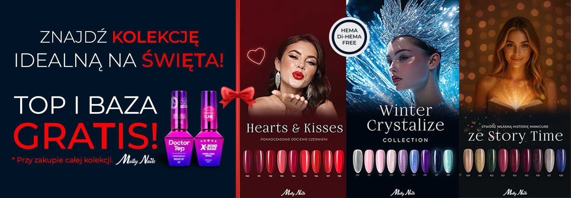Zestaw 12 kolorów Molly Nails Jesień HEMA/Di-HEMA Free 8g + baza i top GRATIS (X-Bond Base, Doctor Top) Kolekcja Jesień Molly Nails to 12 lakierów...
