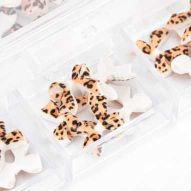 Opakowanie zawiera 45 szt kokardek w panterkę.