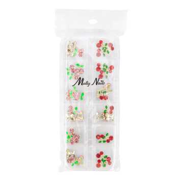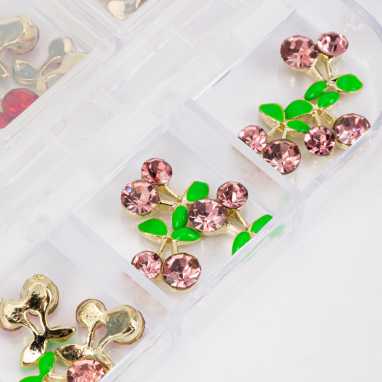 Dodaj swoim stylizacjom wyjątkowego blasku! Zestaw uroczych ozdób w kształcie wisienek z błyszczącymi cyrkoniami to idealny dodatek do manicure hybrydowego, żelowego lub akrylowego.
