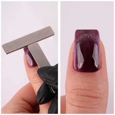 Wykorzystaj jego moc i zaskocz wszystkich głębią koloru. Puść wodze fantazji i eksperymentuj z wzorami i kolorami! Z naszym magnetyzerem uzyskasz idealną, cienką linię charakteryzującą lakiery typu Cat Eye. Niezastąpione narzędzie Twojej pracy! Doskonały do Cat Eye, Cat Eye 3D, 5D, 9D i innych magnetycznych lakierów hybrydowych i żeli! Dzięki niemu podkreślisz wielowymiarowość i unikalność Twojej stylizacji w magicznym stylu! Wykorzystaj dwa magnetyzery i daj działać ich mocy! Przykładając je odwrotnie stworzysz magiczny efekt 'kuli' niczym wir w nieziemskich, świecących mikrocząsteczkach.