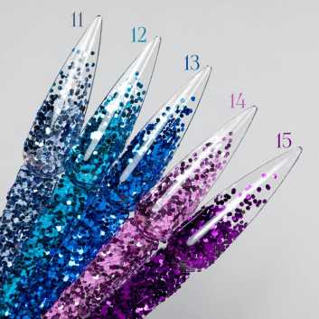 Drobiny można zatapiać pod warstwą żelu, akrylu lub bazie – tworząc efekt delikatnych „piegi” lub pełnej, błyszczącej tafli. Każdy numer (1–21) to inna kombinacja kolorów i odcieni, dzięki czemu z łatwością dopasujesz ozdobę do swojego stylu.