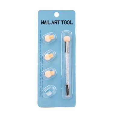 Dwustronny pędzel gąbka do ombre i nail art stempel z cyrkoniami różowy