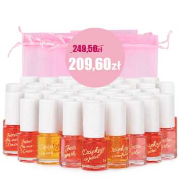 Pakiet oliwek okazjonalnych zapachowych z życzeniami 10 szt 5 ml Szukasz pomysłu na upominek dla swoich klientów? Oto pakiet mini oliwek, które...