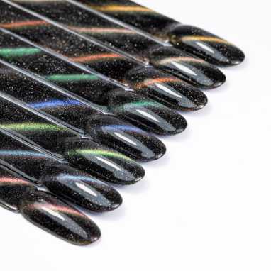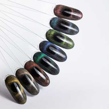 Mają w sobie metaliczny pyłek Cat Eye, który zmienia wygląd stylizacji przy użyciu magnetyzera.
