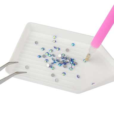 Poręczny i praktyczny zestaw do nakładania cyrkonii niezbędny w ekwipunku każdej Stylistki! Usprawnij swoją pracę oraz precyzyjność z pomocą poręcznego aplikatora. Wosk zapewni dobrą przyczepność cyrkonii do narzędzia. Wysyp ozdoby na tacce, a później z łatwością umieść z powrotem w opakowaniu dzięki zwężonemu brzegowi. Dodatkowo w zestawie pęseta, która również sprawdzi się świetnie przy zdobieniu Twojej stylizacji.