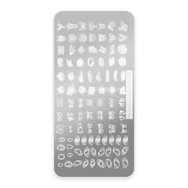 Blaszka przeznaczona do odbijania wzorów metodą stempelkową na paznokciach. Szybka i bardzo łatwa forma na precyzyjne zdobienia paznokci zarówno przy pomocy lakierów hybrydowych, jak i tradycyjnych dedykowanych tej metodzie. Wybierz swój wzór z ogromnej oferty płytek i zaskakuj wyjątkowym manicure.
