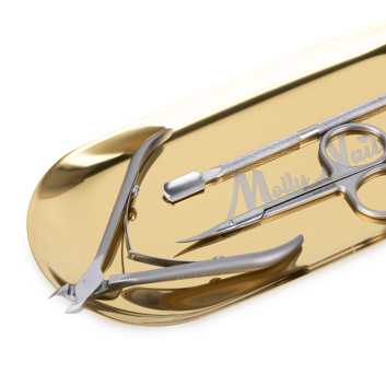 Metalowa tacka na narzędzia Molly Nails złota Metalowa tacka na narzędzia do manicure – porządek i higiena w Twoim salonie Praktyczna i elegancka...