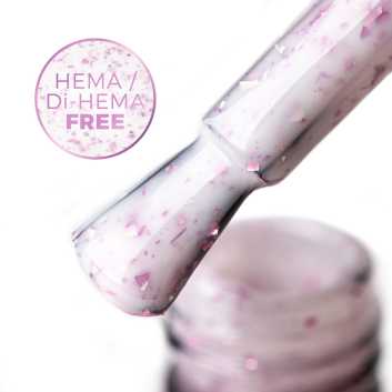 Mleczna baza kauczukowa z różowo metalicznymi płatkami Flakes Rubber Base Milk&Pink MollyLac HEMA/Di-HEMA Free 10 gram Poznaj produkty 2w1,...