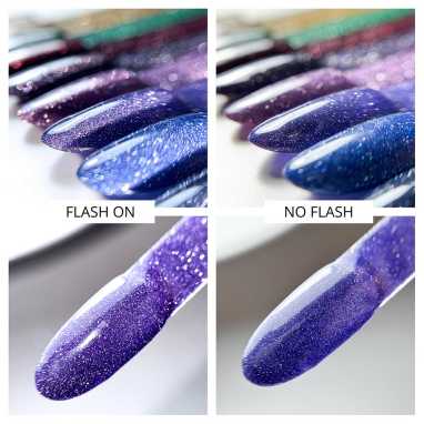 Flashing Lights. To właśnie od światła wszystko się zaczyna… I na świetle kończy! Kolekcja wysublimowanych barw od Molly Nails skrywa w sobie dwie twarze. Pierwsza z nich to przydymiona wersja koloru z delikatnym gwiezdnym pyłem, druga z nich z kolei ukazuje miliony roziskrzonych srebrzystych drobinek skąpanych w pięknych kolorach. To, która wersja będzie widoczna, zależy tylko od światła i jego natężenia!