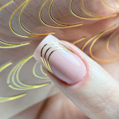 Samoprzylepne, metaliczne naklejki nadają się do aplikacji na każdy rodzaj stylizacji. Prosty sposób użycia pozwala na samodzielne tworzenie eleganckich stylizacji lub dodatków w stylu french manicure. Metaliczne naklejki tworzą bardzo efektowny i biżuteryjny dodatek w kilka chwil.