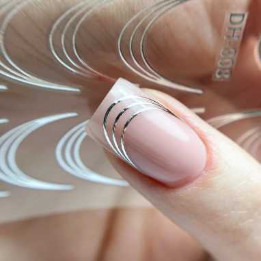 Samoprzylepne, metaliczne naklejki nadają się do aplikacji na każdy rodzaj stylizacji. Prosty sposób użycia pozwala na samodzielne tworzenie eleganckich stylizacji lub dodatków w stylu french manicure. Metaliczne naklejki tworzą bardzo efektowny i biżuteryjny dodatek w kilka chwil.