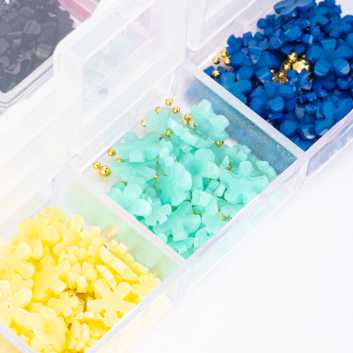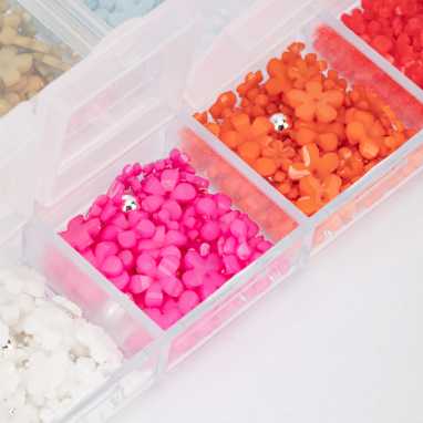 Dodaj paznokciom efektu WOW dzięki zestawowi uroczych kwiatków 3D zamkniętych w praktycznej kasetce z przegródkami. Różnorodne kolory i rozmiary pozwalają tworzyć niepowtarzalne stylizacje – od delikatnych, romantycznych po pełne wyrazu i koloru.