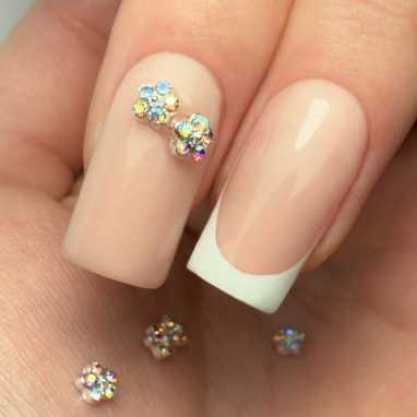 Wzbogać swoją stylizację o eleganckie ozdoby 3D w kształcie kwiatków od Molly Nails! Błyszczące cyrkonie osadzone w srebrnej podstawie nadają paznokciom luksusowego wyglądu i pięknie odbijają światło, tworząc efekt biżuteryjnego manicure.