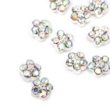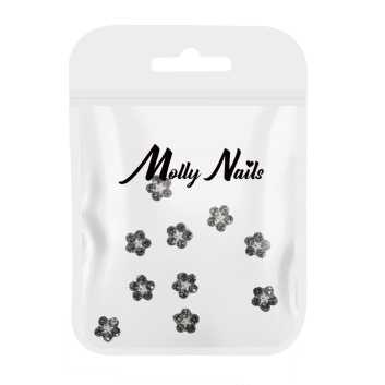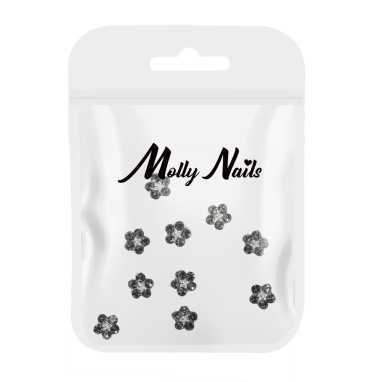 Wzbogać swoją stylizację o eleganckie ozdoby 3D w kształcie kwiatków od Molly Nails! Błyszczące cyrkonie osadzone w srebrnej podstawie nadają paznokciom luksusowego wyglądu i pięknie odbijają światło, tworząc efekt biżuteryjnego manicure.
