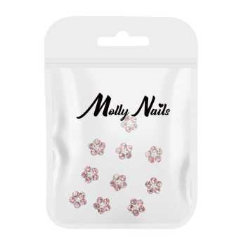 Wzbogać swoją stylizację o eleganckie ozdoby 3D w kształcie kwiatków od Molly Nails! Błyszczące cyrkonie osadzone w srebrnej podstawie nadają paznokciom luksusowego wyglądu i pięknie odbijają światło, tworząc efekt biżuteryjnego manicure.