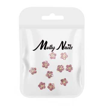 Wzbogać swoją stylizację o eleganckie ozdoby 3D w kształcie kwiatków od Molly Nails! Błyszczące cyrkonie osadzone w złotej podstawie nadają paznokciom luksusowego wyglądu i pięknie odbijają światło, tworząc efekt biżuteryjnego manicure.