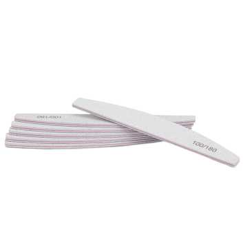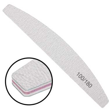 Jednorazowy, uniwersalny pilnik o gradacji 100/180 i kształcie łódki, do paznokci naturalnych i przedłużonych o niezwykle trwałych komponentach i długim czasie użytkowania. Cechuje się twardym, wysoce odpornym na złamania i odkształcenia środkiem. Produkt płynnie sunie po piłowanej powierzchni, nie rani skóry ani nie powoduje dyskomfortu. Wysokiej jakości nasyp jest odporny na ścieranie.