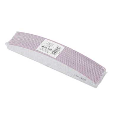 Jednorazowy, uniwersalny pilnik o gradacji 100/180 i kształcie łódki, do paznokci naturalnych i przedłużonych o niezwykle trwałych komponentach i długim czasie użytkowania. Cechuje się twardym, wysoce odpornym na złamania i odkształcenia środkiem.
