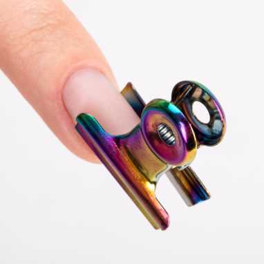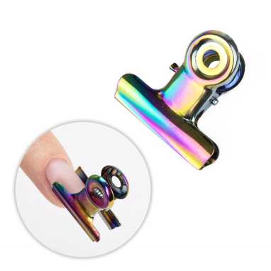 Metalowy klips/klamra do zaciskania tunelu polecany podczas pracy z akrylem lub żelem.