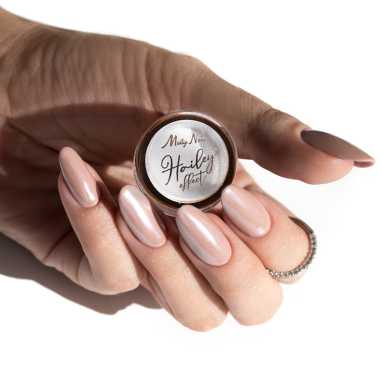 Hailey to ponadczasowy efekt, który w delikatny sposób odmieni Twoją stylizację w mieniącą się, perłową taflę. Wspaniale prezentuje się na wszystkich jasnych pastelowych kolorach – różu, mlecznej bieli i beżu, dodając im niecodziennego efektu muśnięcia metaliczną mgiełką. Sprawdzi się również w stylizacjach ślubnych, wzbogacając french czy baby boomer tworząc niezapomniany efekt.